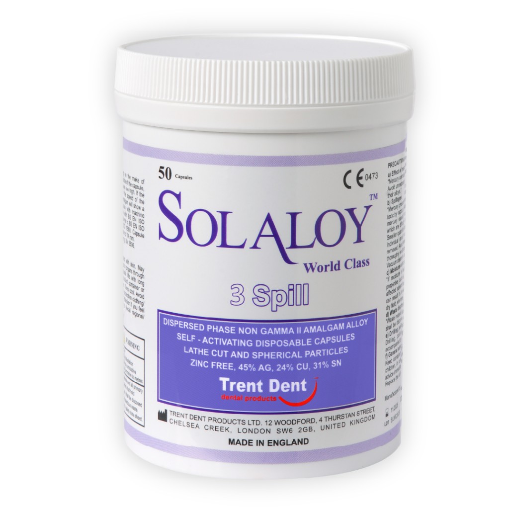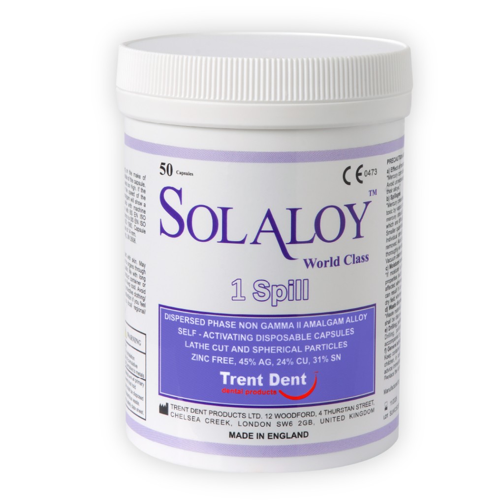 این محصول با استفاده از ترکیبات با کیفیت بالا و فاقد زینک می باشد. آمالگام کپسولی سولالوی ورلد کلس (SOLALOY World Class) دارای ذرات کروی و تراشیده است که باعث افزایش مقاومت در برابر فشار و سایش می شود. Solaloy World Class با سازگاری حاشیهای فوقالعاده، امکان تراش آزاد و هموار این ماده ترمیمی تا سطح انسداد را فراهم میکند. این ماده ترمیمی دارای ضریب خزش استاتیکی بسیار پایین و استحکام اولیه بالا است، بنابراین میتوان حاشیههای قوی را بدون شکستگی ایجاد کرد و خطر شکستگیهای تودهای در ساعات اولیه پس از ترمیم کاهش مییابد.