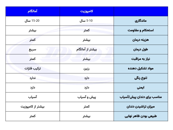 فرق کامپوزیت با آمالگام از نظر ماندگاری و طول عمر