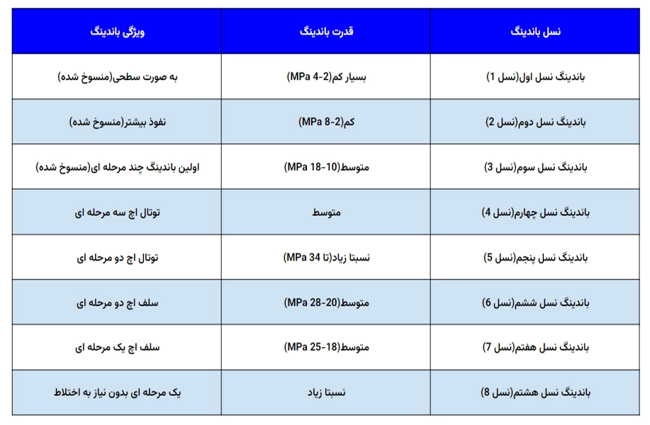 - قدرت باندینگ 20 الی 28 مگاپاسکال
