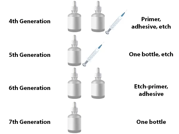 - به نسل 5 one bottle میگویند زیرا پرایمر و ادهزیو داخل یک بطری است، اما مینا و عاج را باید جداگانه اچ کنید. نسل 5 همان باندی است که به صورت روتین در بخشها استفاده میشود.